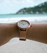 This stylish rose gold timepiece will go with anything, anywhere, anytime. Don't feel over or under dressed with this versatile watch.